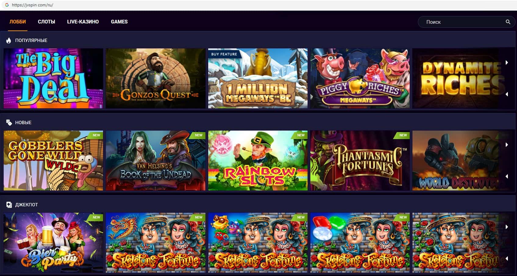 В качестве приманки на онлайн-ресурсе конторы JVSpin предоставлены разнообразные онлайн-игры, где азартным игрокам очень легко потерять все свои деньги.
