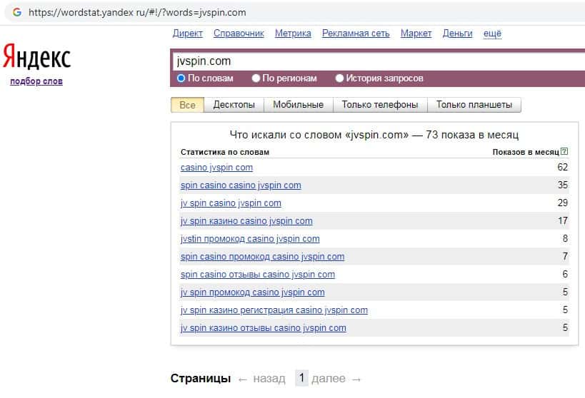 Данный интернет-лохотрон под названием "JVSpin" скорее всего пользуется популярностью в поисковике Yandex из-за рекламы в интернете.
