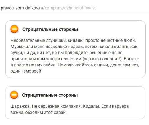 GeneralInvest является обычной конторой кидал, - мнение бывших сотрудников данной сомнительной организации. Чтобы лично ознакомится с мнением людей, ранее являвшихся частью компании Дженерал Инвест, предлагаю перейти к ознакомлению со следующим информационным материалом в виде комментов о General Invest.