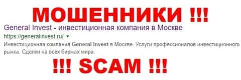 General Invest - это форекс-кухня, работающая на российском и международном финансовых рынках, которая разводит людей по всему миру. Контора имеет московский адрес и позиционирует себя как ООО Концерн "ДЖЕНЕРАЛ-ИНВЕСТ" с идентификационным номером налогоплательщика 7715750741. Совмещая брокерскую и дилерскую деятельность кухня завлекает деньги своих клиентов с последующим их сливом.