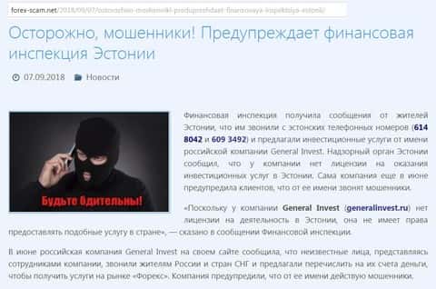 Аферисты Дженерал Инвест появились на территории Эстонии