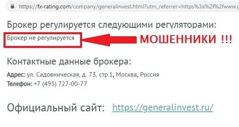 Несмотря на наличие кучи лицензий и хорошо отделанного сайта, деятельность мошенников из General Invest не имеет регулятора. Информацию находим на сайте fx-rating com. Аферисты из этой шарашки могут творить все, что угодно, прикрываясь громкими словами.