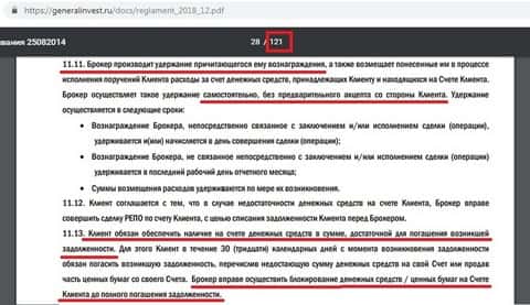 В соглашении General Invest целых 121 страница. Мало кто способен прочесть договор целиком. А зря, ведь здесь много «интересных» пунктов. Например, о том, что Дженерал Инвест по своему усмотрению и без разрешения клиента может распоряжаться средствами трейдера.