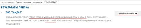 Любое предприятие можно найти по его данным по типу ИНН или ОГРН. ИНН конторы GeniusTrading имеется на сайте. Что же, поищем. Для этого будет использован сайт egrul nalog ru. И правда, есть такое предприятие. И данные сайта Джениус Трейдинг с этим предприятием совпадают. Финальных штрих, нажатие на клавишу "Получить выписку".
