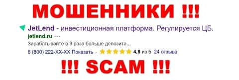 jetlend ru - непосредственно сайт мошеннического проекта Джет Ленд