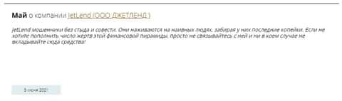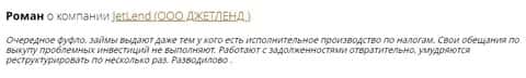 Следующий отзыв также не красит сотрудников конторы Джет Ленд, а скорее разоблачает их мошенническую деятельность, прикрытую честными лозунгами и заявлениями.