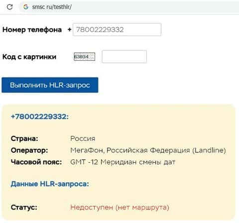 smsc ru testhlr - сервис проверки телефонных номеров посредством HLR-запроса