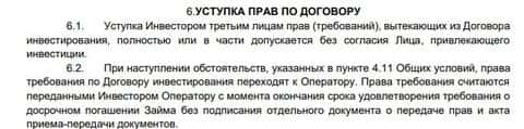 Инвестор может уступать свои права третьим лицам, оператору (компании Джет Ленд) и разного рода коллекторам при возникновении проблем с возвратом инвестиций.