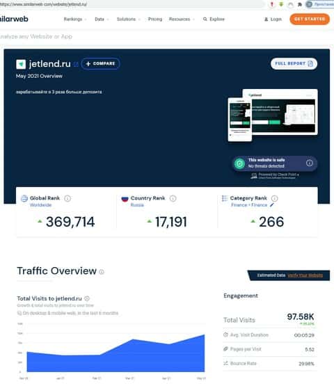 Оценка показателей работы портала аферистов Джет Ленд сервисами similarweb com
