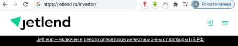 Вот очередное упоминание в "подвале" сайта инвестиционной площадки Джет Ленд о включении данного ресурса в реестр инвестиционных платформ ЦентроБанка России.