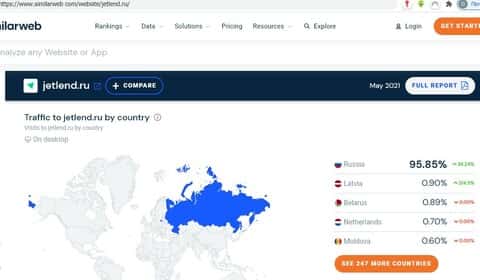 - Оценка показателей работы портала аферистов Джет Ленд сервисами similarweb com
