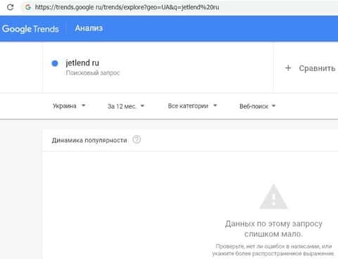 Анализ брендовых запросов о мошенническом проекте Джет Ленд на поисковике Google