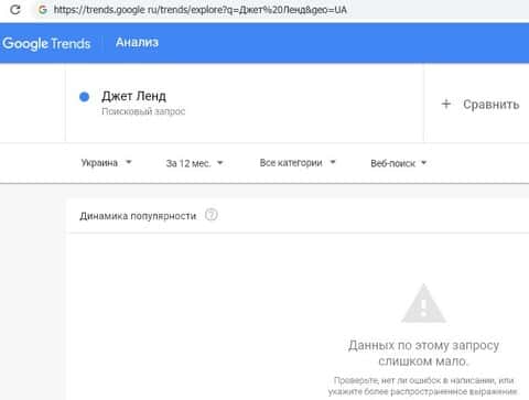 - Анализ брендовых запросов о мошенническом проекте Джет Ленд на поисковике Google