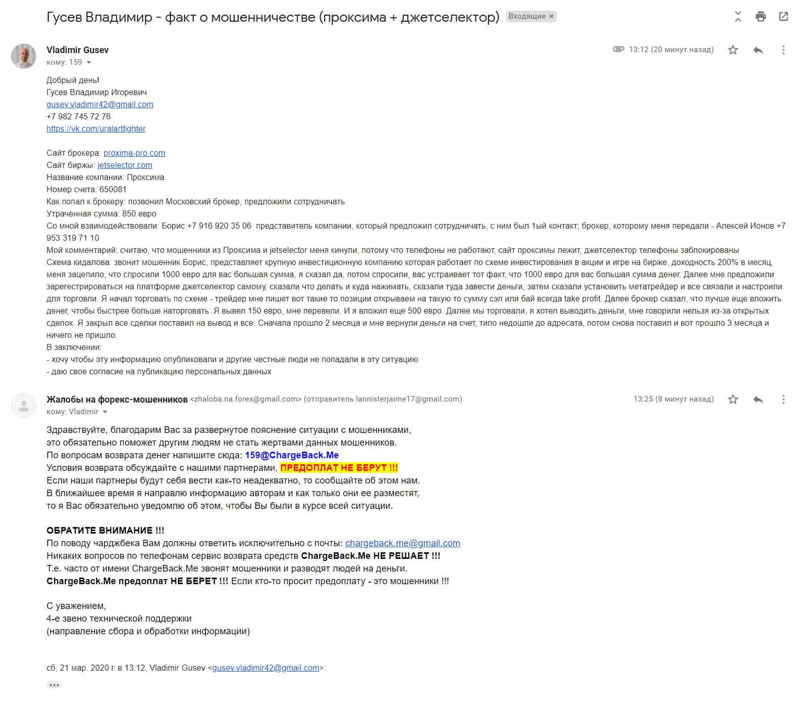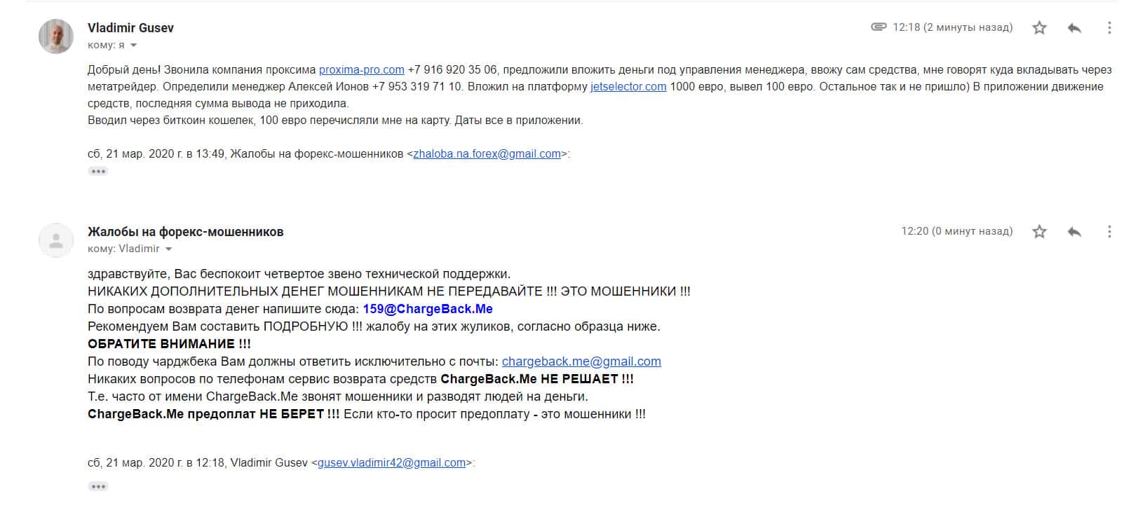 Детальная жалоба в том числе и на скаммерский проект Джет Селектор - клиент потерял около 900 евро