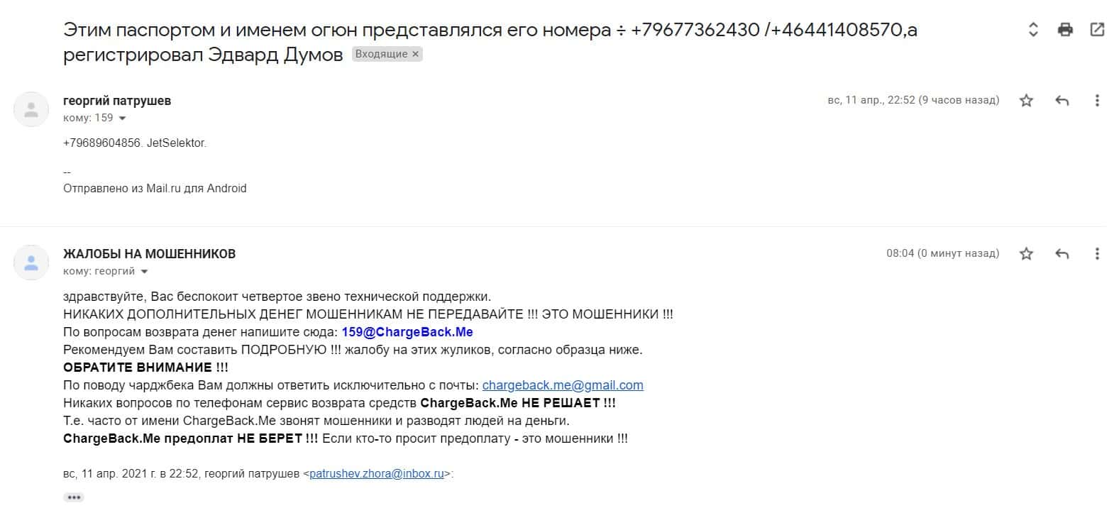 Пострадавший указал информацию об аферистах: