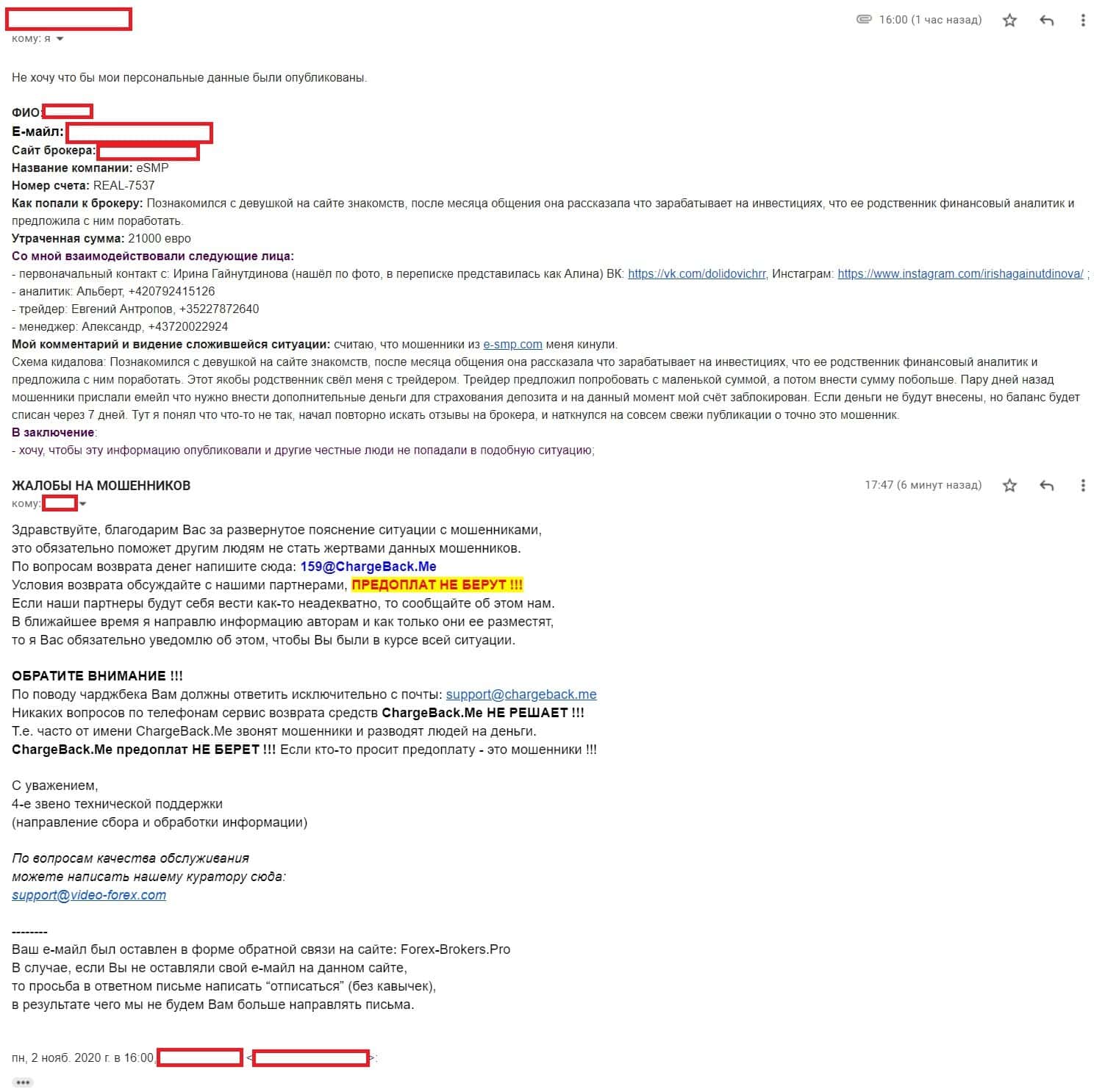 На публикации ниже предлагаем ознакомится с историей пострадавшего клиента конторы Е СМП, автора жалобы данные жулики взяли в оборот, присвоив его вложенные 21000 евро.