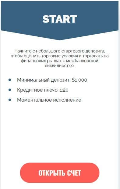 Первый тип счета, который предлагают открыть клиентам мошенники e SMP - это STАRT с начальным капиталом в 1000$ и кредитным плечом 1:20.