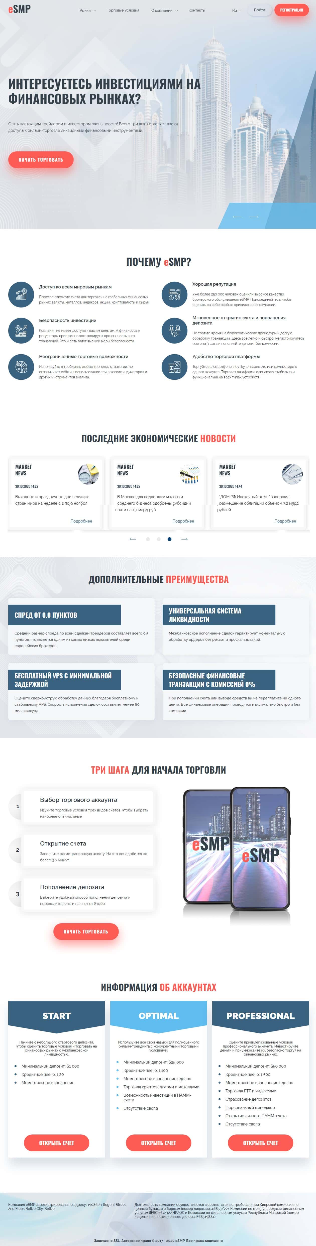 Главная страница сайта мошенников e SMP выглядит типично для такого рода лохотронов: простенький дизайн и минимум полезной информации для клиента.