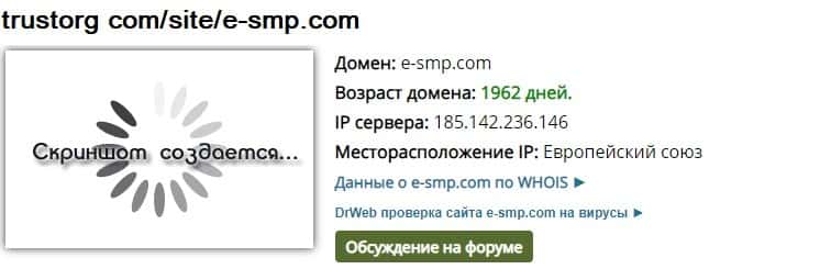Возраст домена e-smp com составляет 1962 дня. Это очень большой срок, в течение которого можно обмануть много людей.