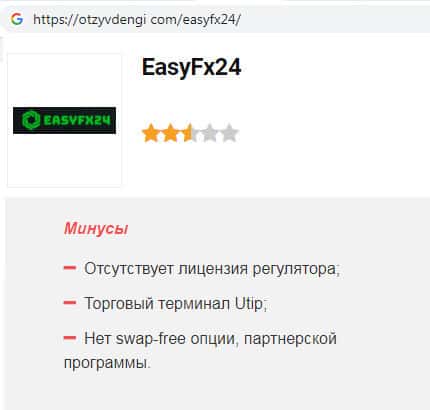 - Информация о регуляции скам-брокерской конторы EasyFX24