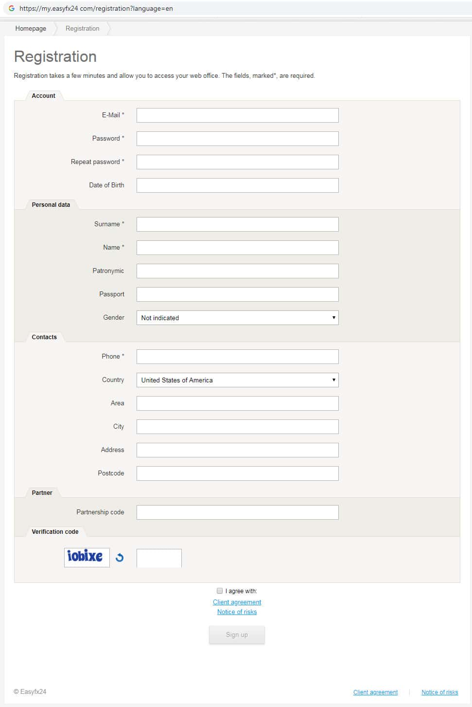 В уведомлении о рисках псевдо-брокерская контора Изи ФХ 24 указывает о том, что торговля на сайте сопряжена определенным уровнем риска. Соответственно данная брокерская компания не несет никакой ответственности за деньги утраченные клиентом на их фальшивом сайте. В данном случае жулики EasyFX24 ссылаются на ошибочный выбор торговой стратегии клиента.