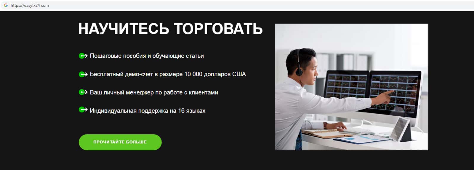 - Мошенники EasyFX24 предлагают воспользоваться якобы бесплатным демо-счетом