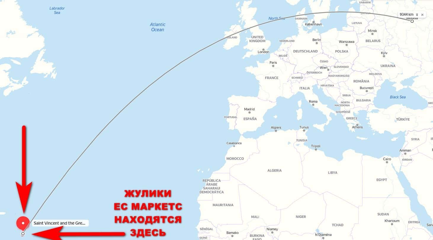 Касательно месторасположения мошеннического брокера ЕС Маркет, то здесь все просто - они разместили свой главный офис на территории оффшора Сент-Винсент и Гренадины.