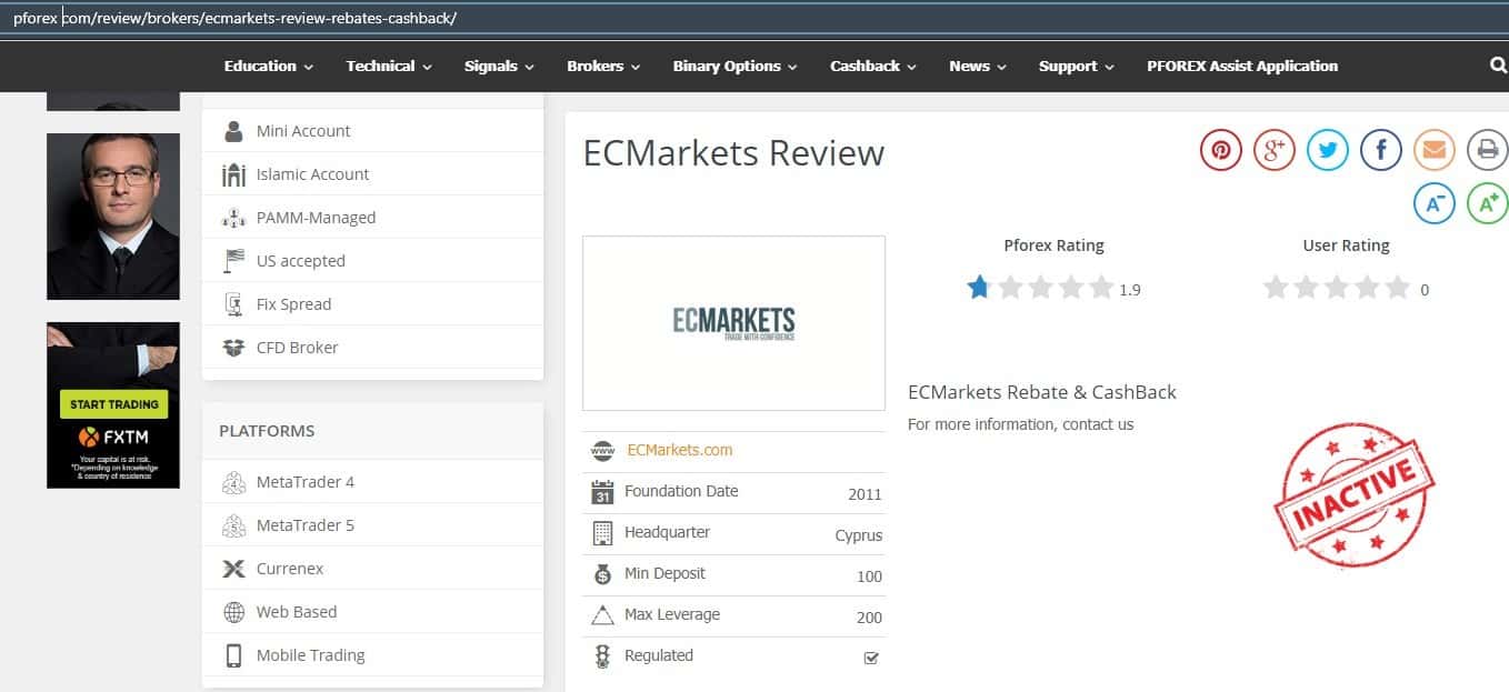 - Сайт конторы EC Markets раньше не работал