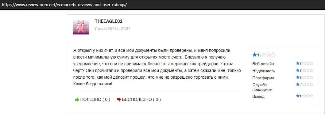 Мошенническая контора ЕС Маркет получает самые низкие рейтинги в различных обзорах, так как они по параметрам не дотягивают даже до средних показателей среди других брокеров.