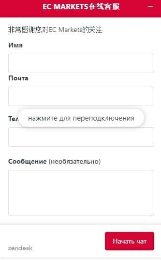Также аферисты EC Markets предлагают воспользоваться онлайн-чатом. Мы не советуем туда обращаться, так как они начнут убеждать пополнить счет и следовать их рекомендациям.