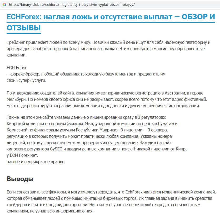 - Скам-организация ECHForex не выплачивает деньги своим клиентам