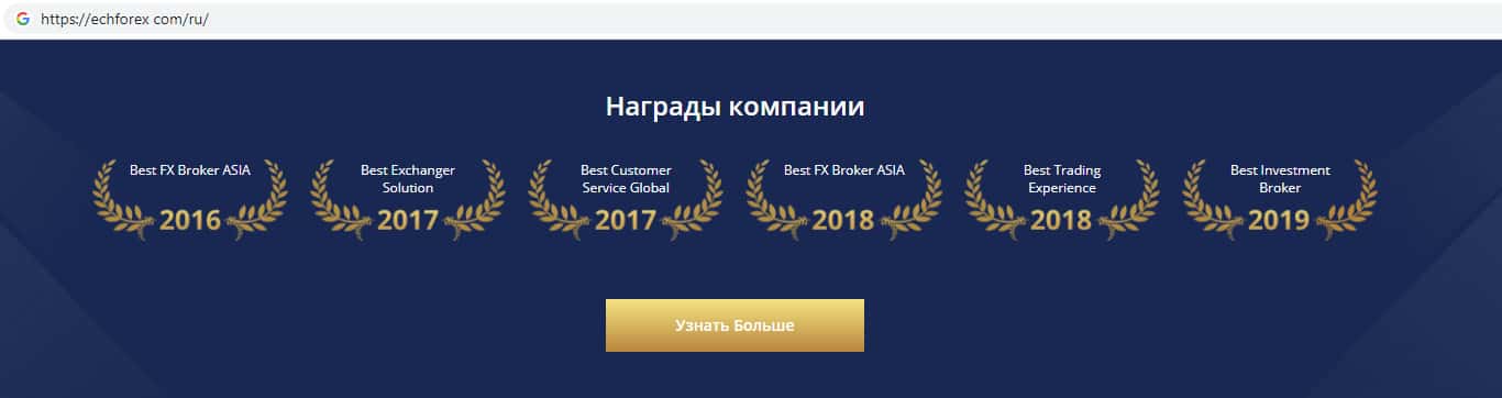 На официальном сайте скам-брокера ECHForex отыскана информация, которая вероятнее всего не имеет никакого отношения к данной организации, а именно какие-то награды, а точнее изображение наград. Не верьте шулерам ЕЦХ Форекс и их якобы достижениям, они ничего не значат !!!