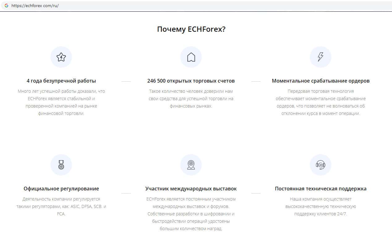 Обзор официального интернет-сервиса конторы ECHForex