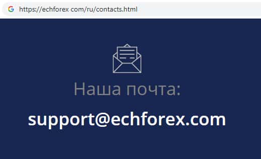 - адрес электронной почты брокерской конторы ECHForex: support@echforex com