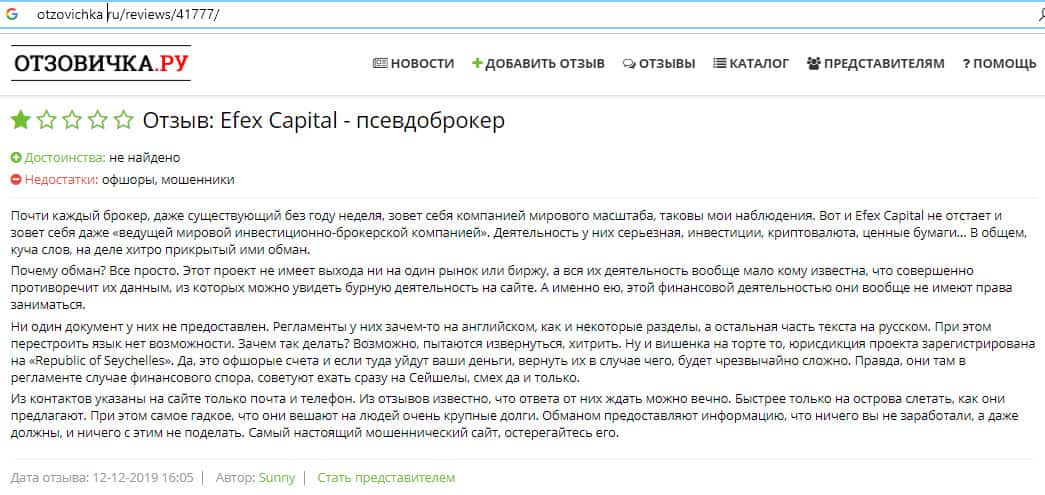 - Рейтинговый портал о псевдоброкере Efex Capital