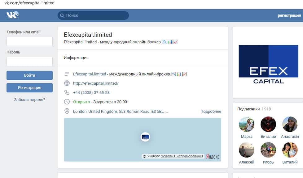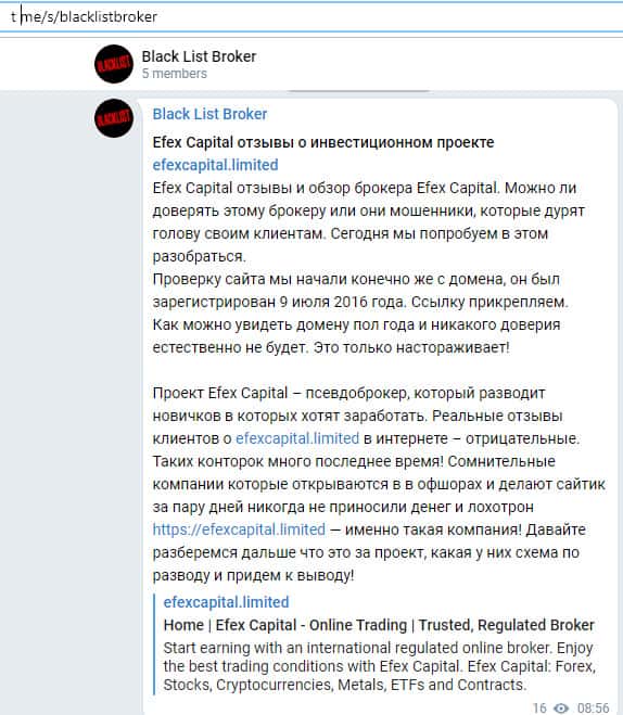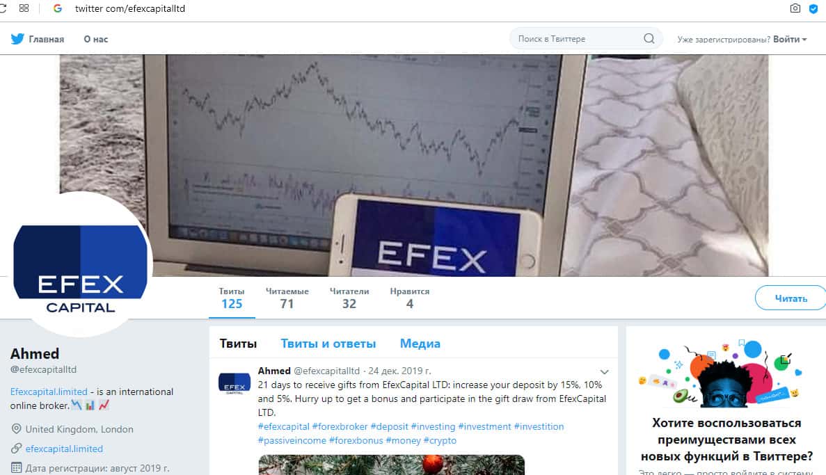 - аккаунт в Твиттер twitter com/efexcapitalltd