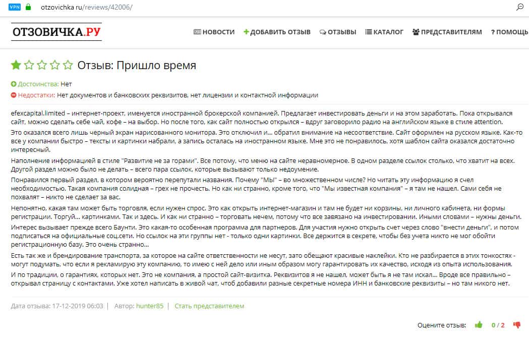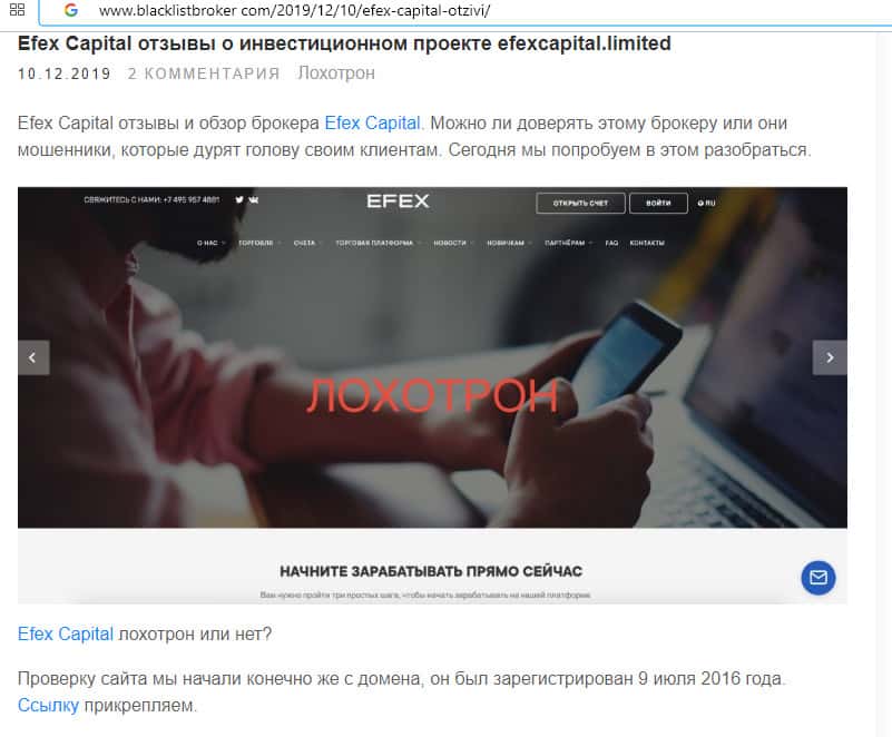 - Очередной веб-ресурс не советует торговать через кухню Эфекс Капитал