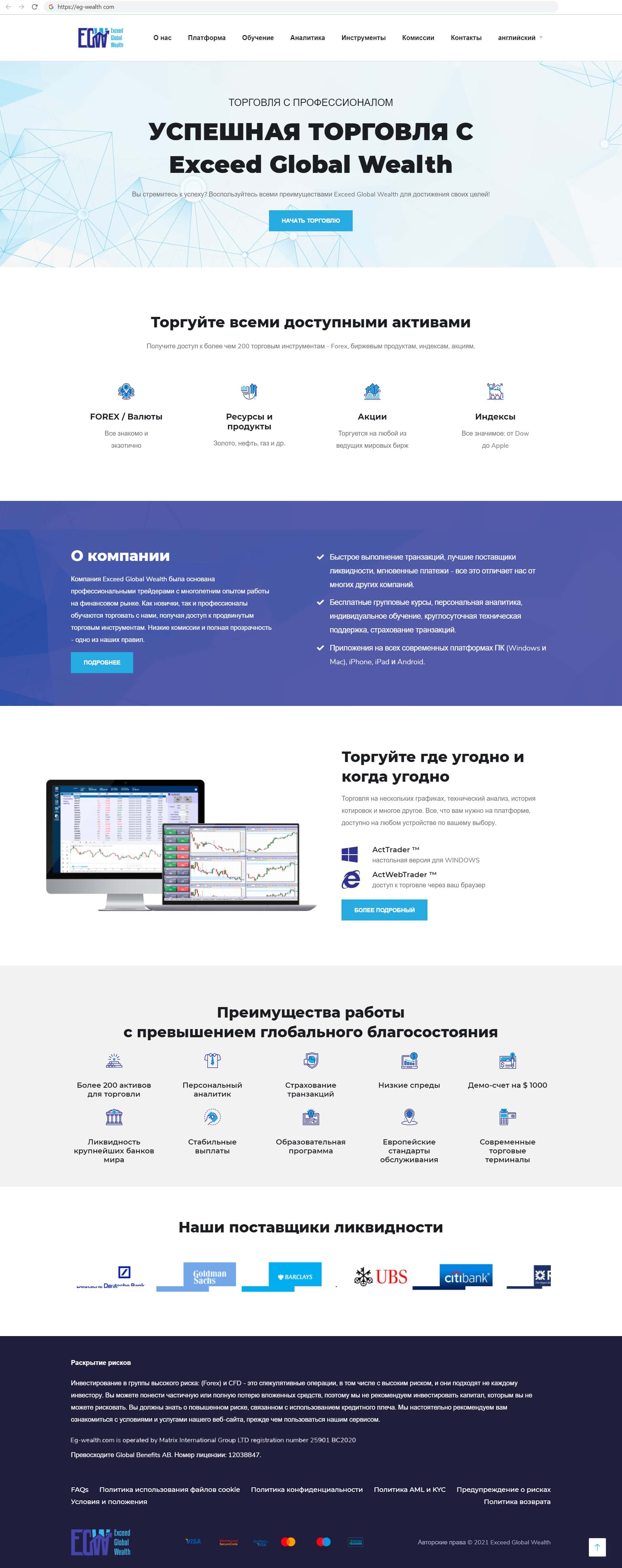 Торговая платформа недоконторы EG Wealth