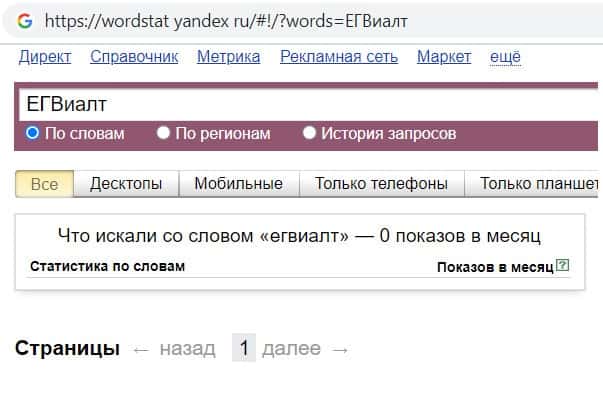 Так же мы проверили количество запросов аферистов ЕГ Виалт по русскоязычному названию, но без пробела, а именно "ЕГВиалт", но и этот запрос пользователи не выполняли.