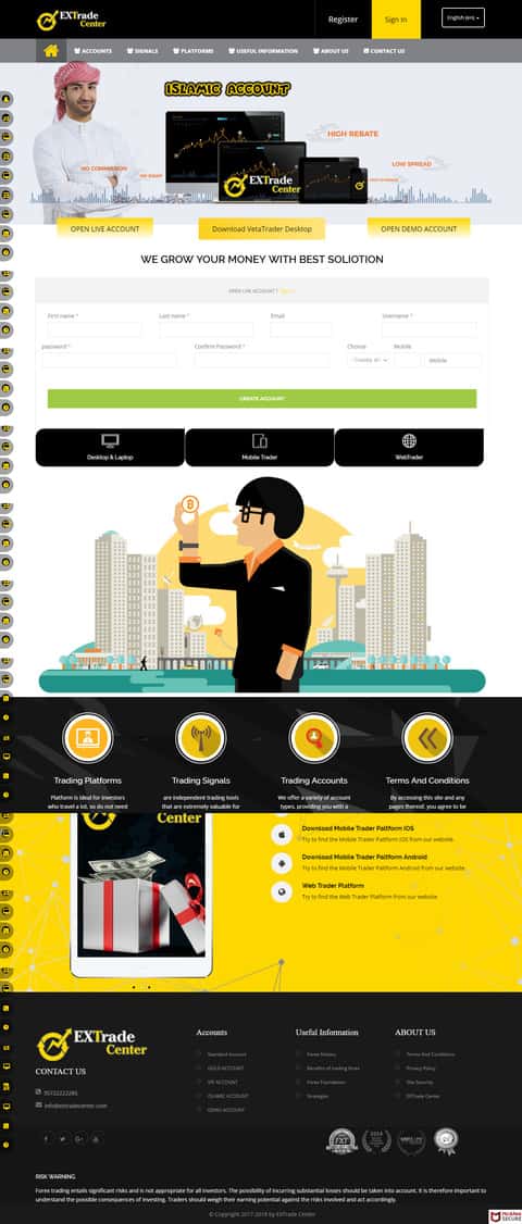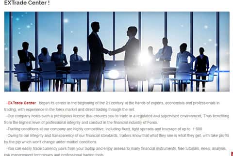 По поводу сайта конторы EXTrade Center можно сказать только, что он яркий и красочный, в стиле онлайн-казино, где гарантируют выигрыши. Но если начать читать, о чем там пишут, то можно только ужаснуться, так как жулики понятия не имеют о чем пишут, а их торговая платформа поможет использовать кухонные методы слива клиентов.