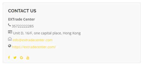 Для связи с мошенниками EXTrade Center, жулье использует некоторые каналы связи, а именно номер телефона и электронную почту. Также они указывают, что главный офис расположен в Гонконг. Так что если есть желание навестить их, предоставляем все эти данные ниже: