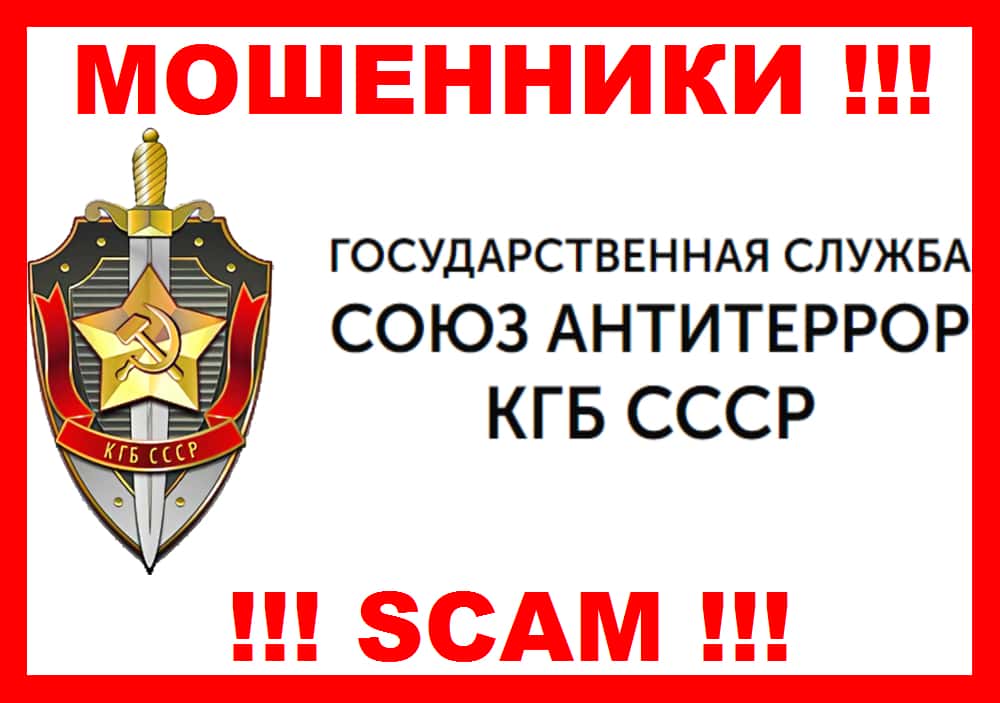Еще одна разводная контора Союз Антитеррор, возомнившая себя преемниками КГБ, разводят людей на вложения в свой лоходром. Авантюристы входят в доверие к людям, которые являются поклонниками былого режима и пользуясь их расположением заставляют осуществлять якобы финансирование его возрождения.