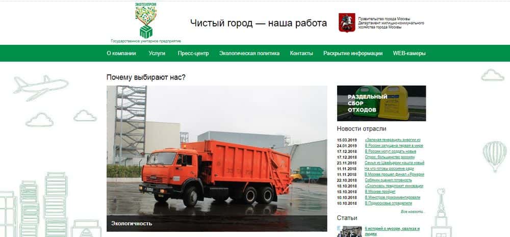 Все, что сказано на сайте о преимуществах жуликов Экотехпром - полное вранье. Но сами мошенники отказываются это признавать, и до последнего строят из себя эдаких героев, якобы спасающих город от мусора. Дальше следуют разделы с новостями скам-предприятия и отрасли. В основном это фестивали и "дни чистоты" для замыливания глаз.