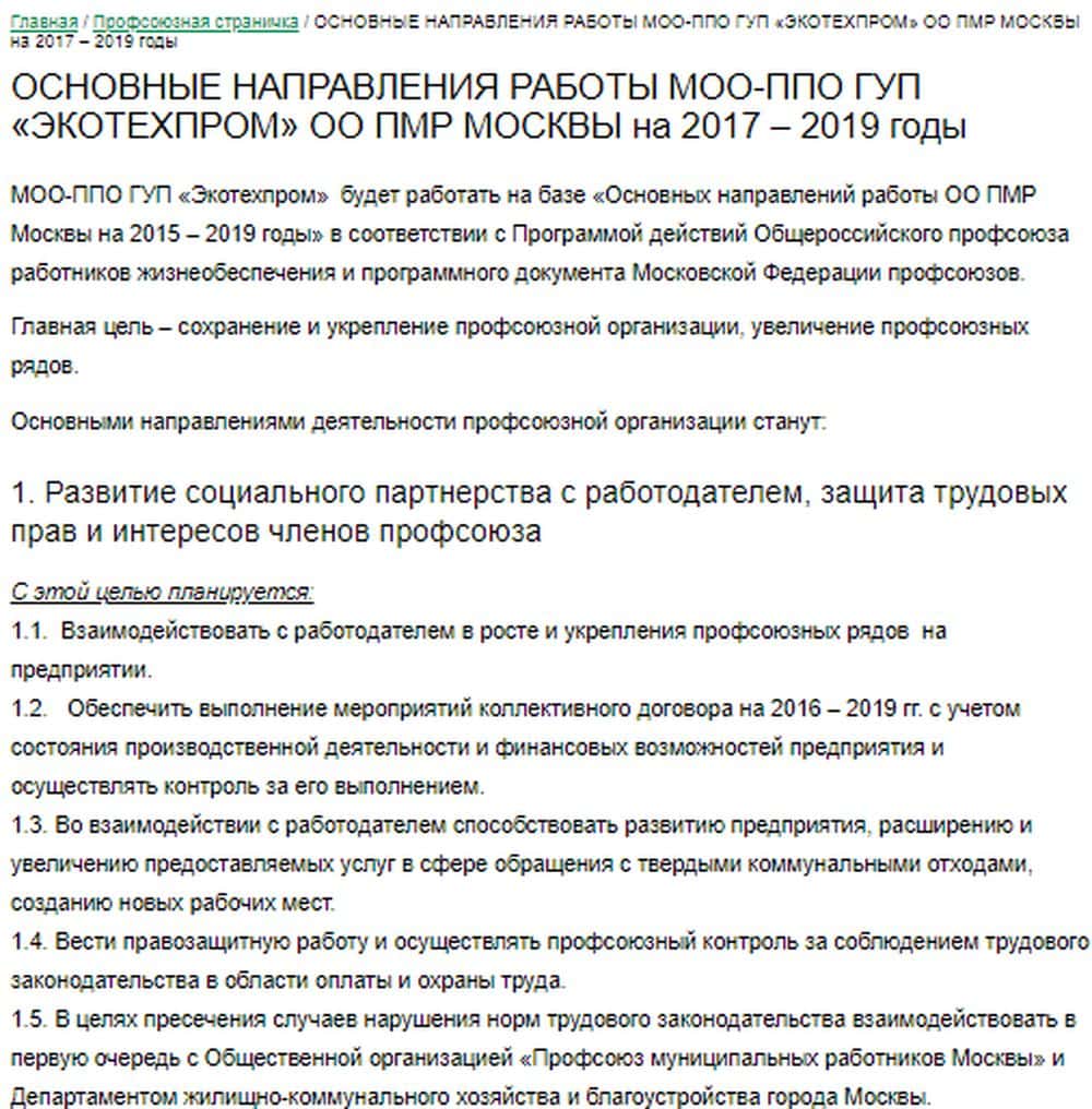 Мошенники Экотехпром обещают своим сотрудникам защиту профсоюзов, защиту прав и прочую чушь. Как и все аферы сети, которую возглавляет псевдо-фонд Казна РА, контора тяготеет к совковости. Это помогает кидалам Экотехпром контролировать собственных рабочих, обеспечивая им мнимое чувство защищенности и запудривая мозги.