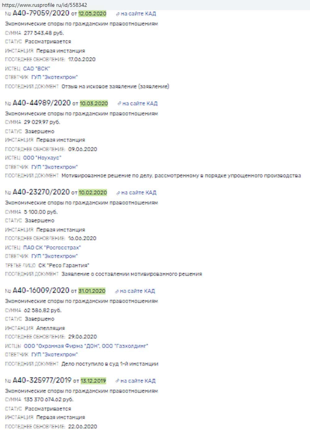 На том же портале rusprofile ru можно выяснить, что мошенники Экотехпром не такие белые и пушистые, какими хотят казаться. По крайней мере, деньги они из своих загребущих лап по доброй воле не выпускают. Против жуликов возбужден целый ряд судебных дел, которые касаются в основном страховых выплат - так что каталы не платят.