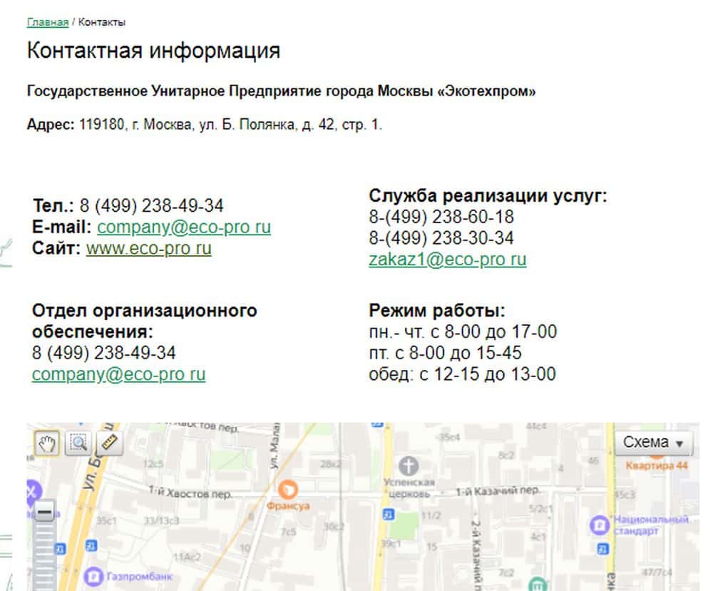 Не скрывают махинаторы Экотехпром и контактных данных. Это не удивительно, ведь им нужно как можно больше клиентов, уверенных, что это предприятие вывезет и безопасно утилизирует мусор. Так что аферисты проводят активную самопропаганду и у каждого из их подразделений есть собственный адрес и номер. Контакты катал: