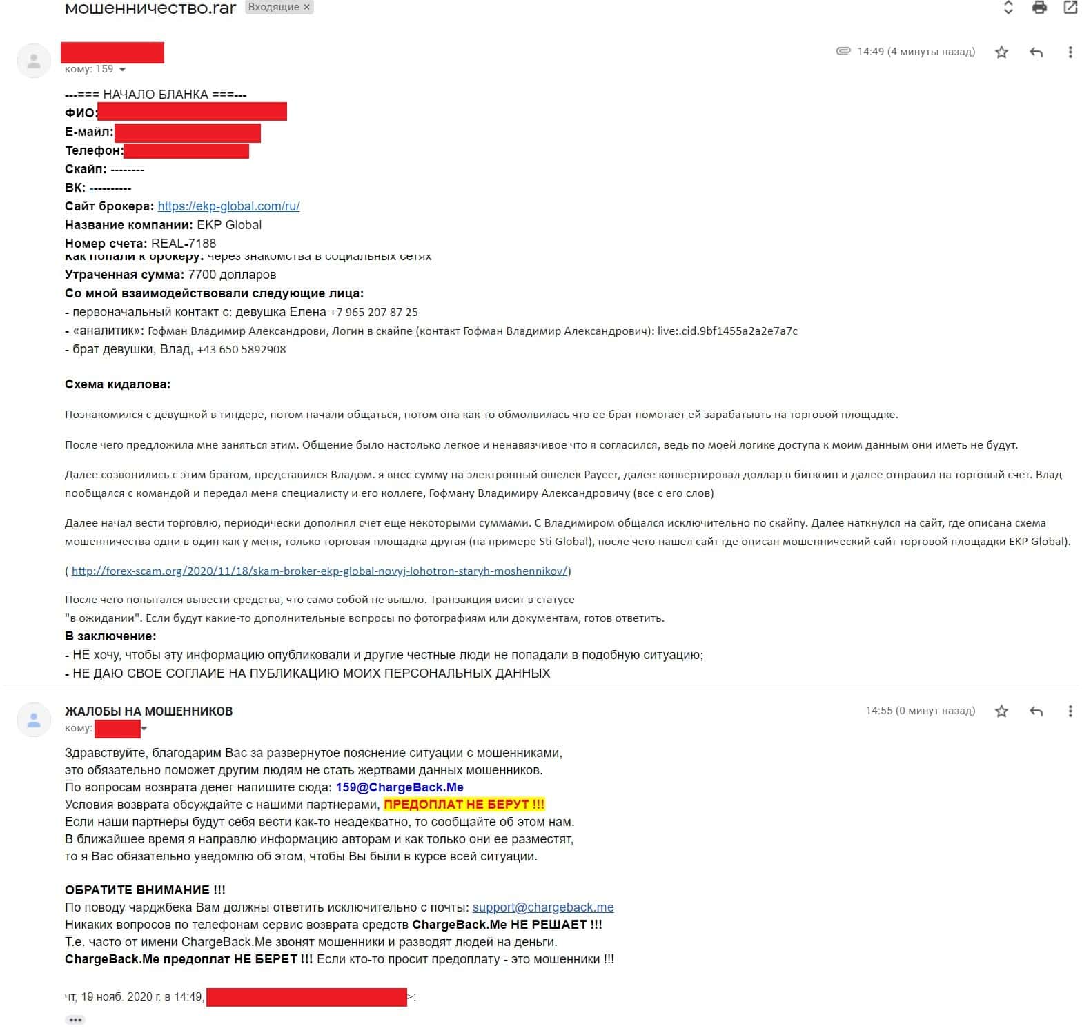 Информация об аферистах из фейковой брокерской организации EKP Global