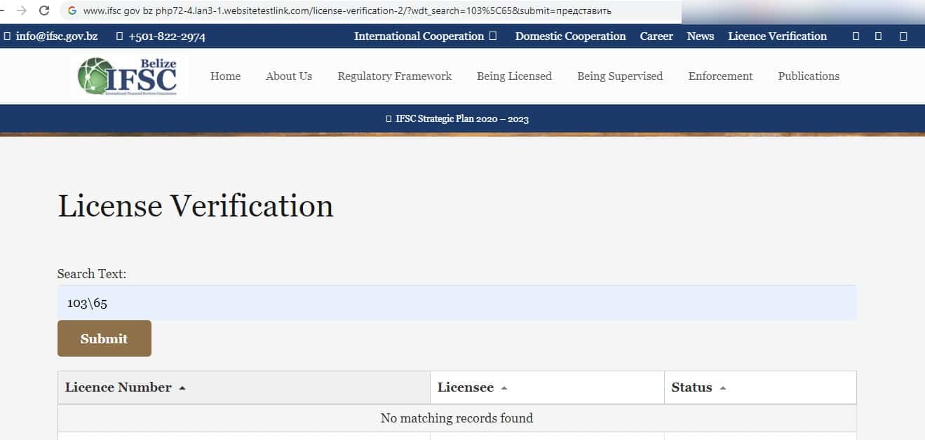 На скриншоте видно, что вбивая номер лицензии на сайте Комиссии по международным финансовым услугам (IFSC), информация отсутствует. Это все была ложь жулья EKP Global.