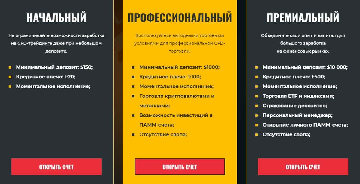 Если трейдера разведут на открытие аккаунта у ворюг ЕКП Глобал и вложения денег, то клиенту предложат один из трех аккаунтов - начальный, профессиональный и премиальный.