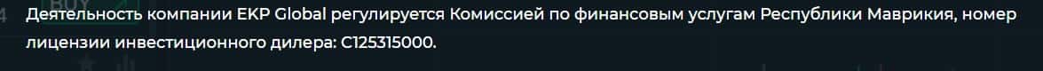 На официальном портале Комиссии по финансовым услугам Республики Маврикия, вбивая в поиск номер лицензии брокера EKP Global, поиск ничего не находит, очередной обман.